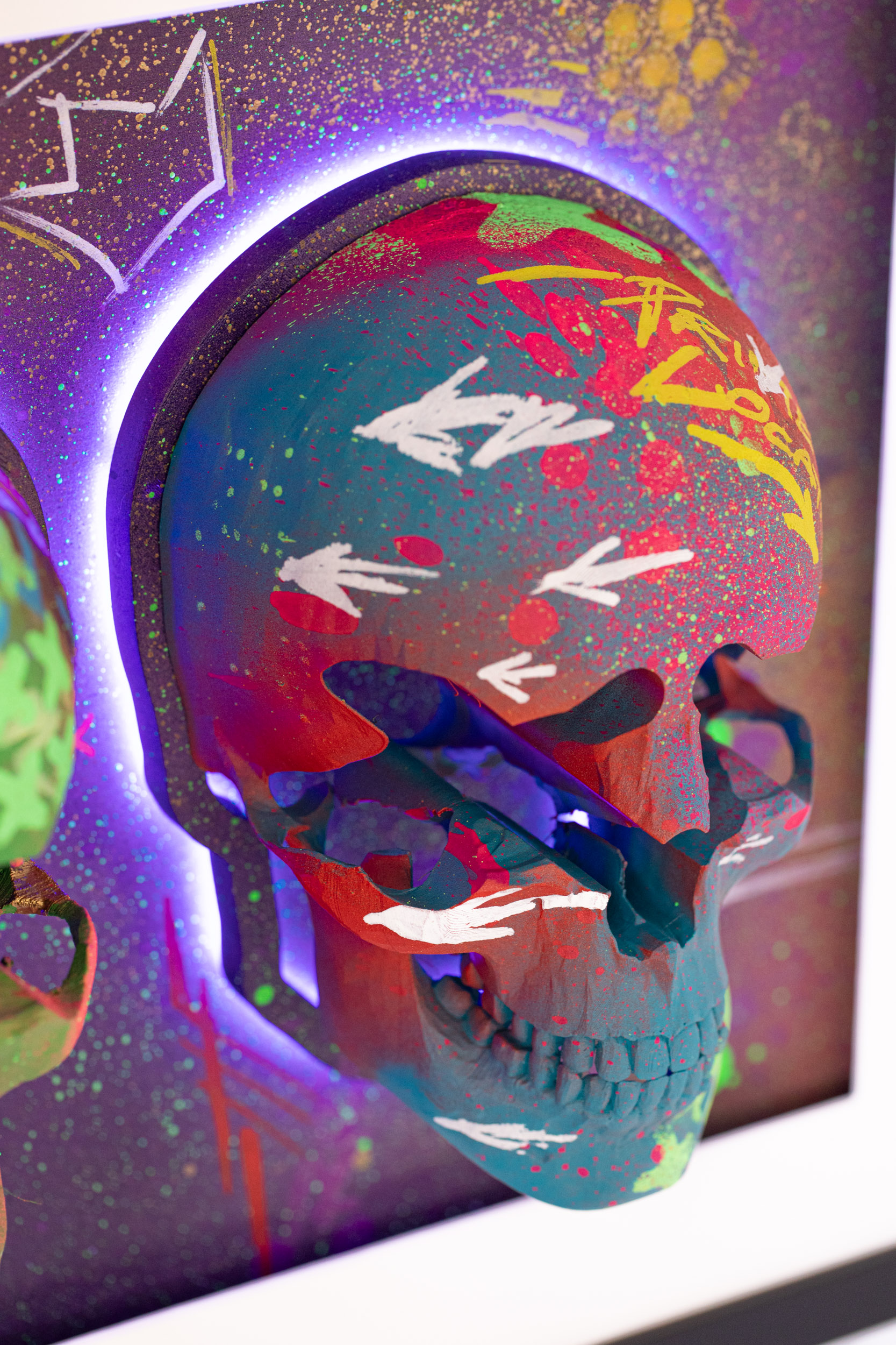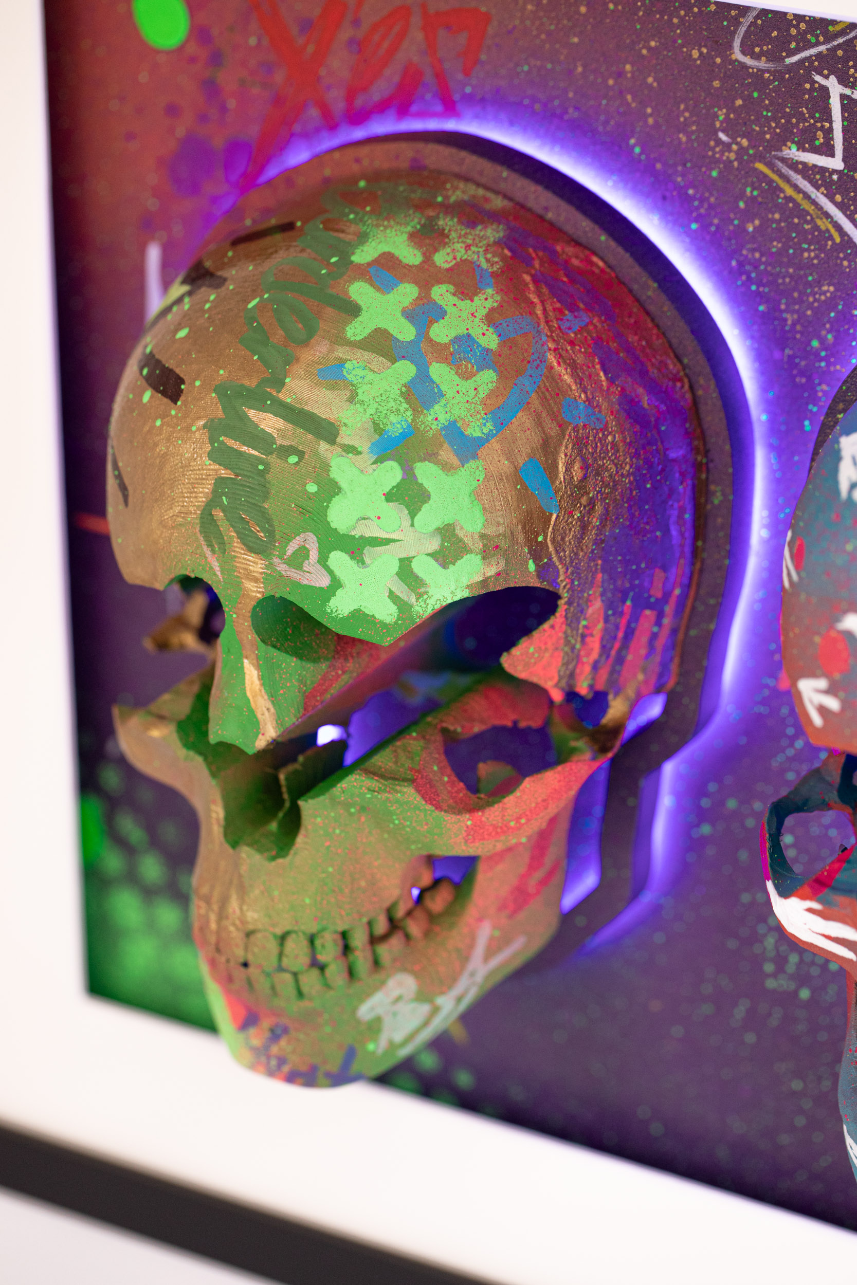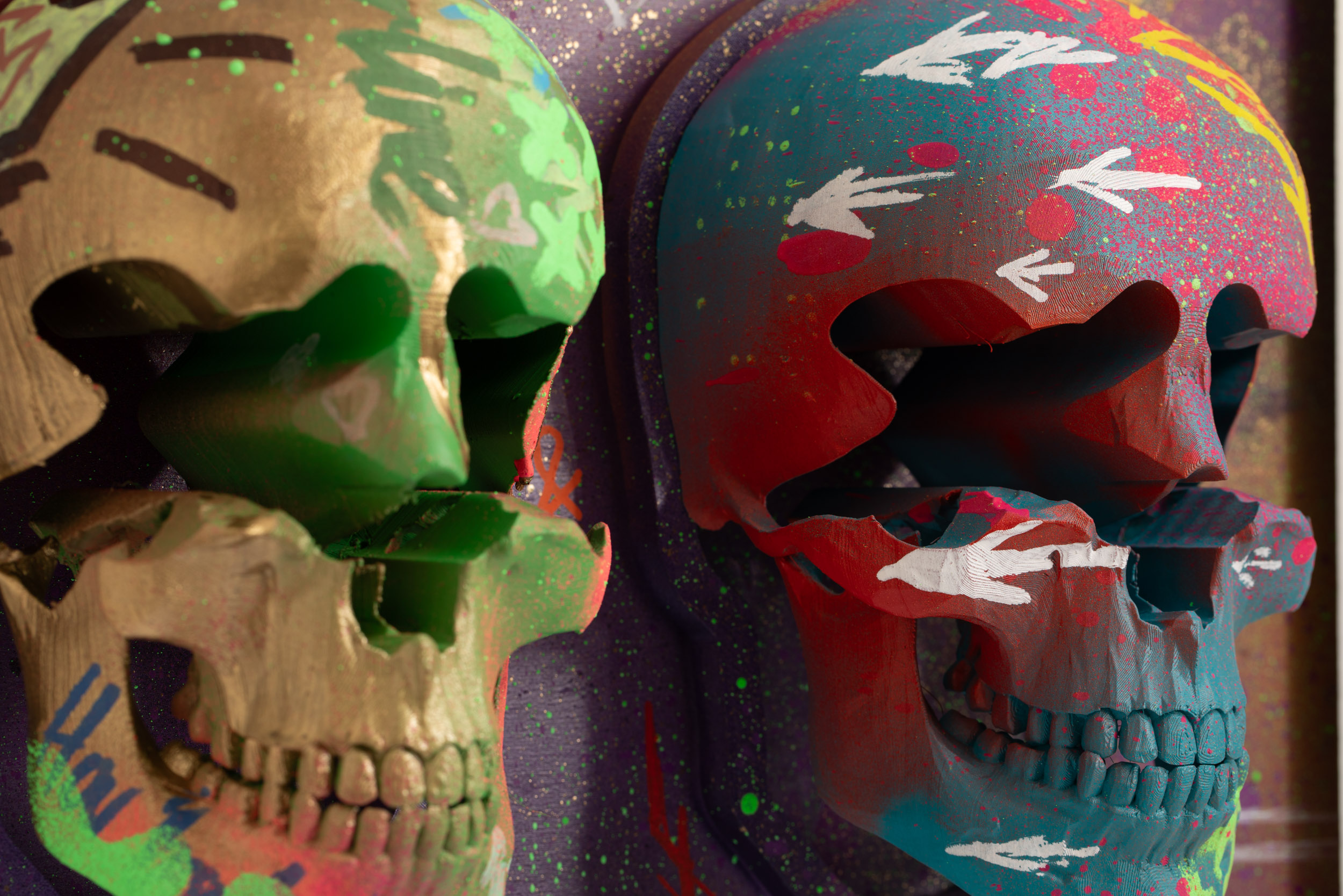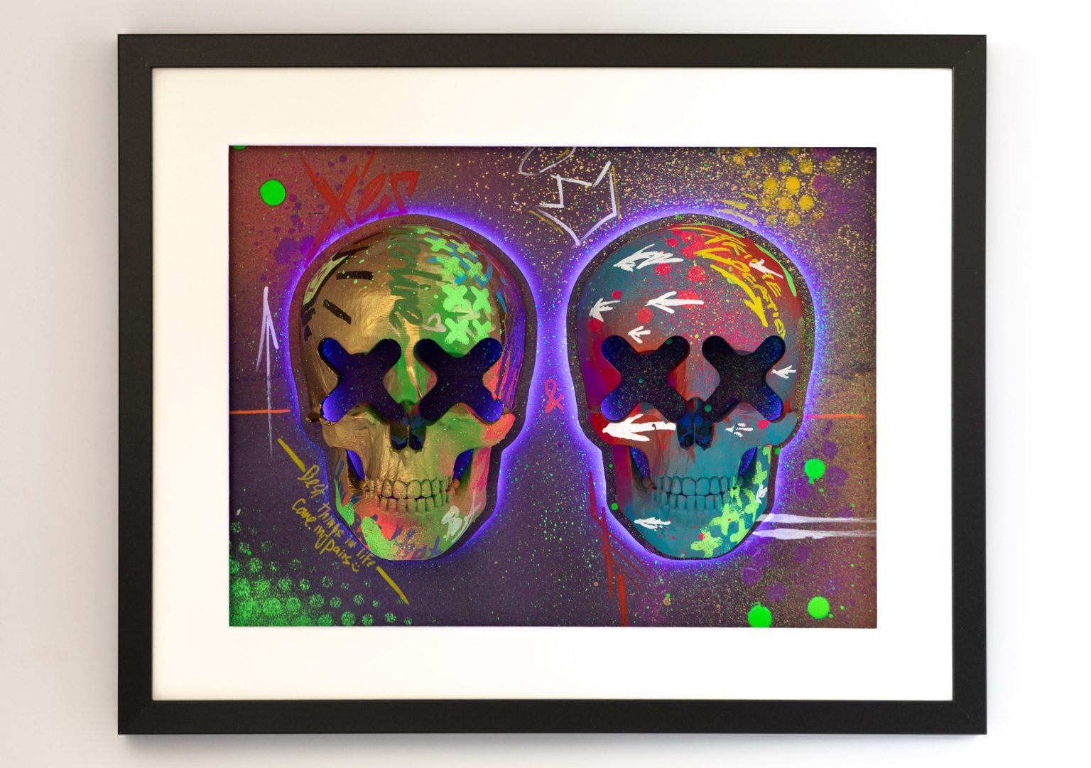 It Comes In Pairs – Death of Vandals series, 20253D print on wood, acrylic paint, LED neon52 × 42 cm20½” × 16½”