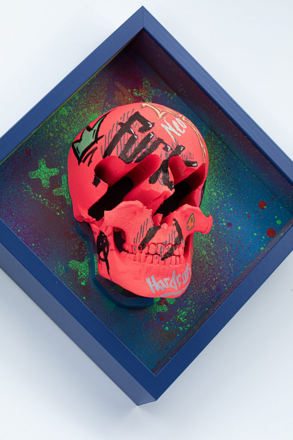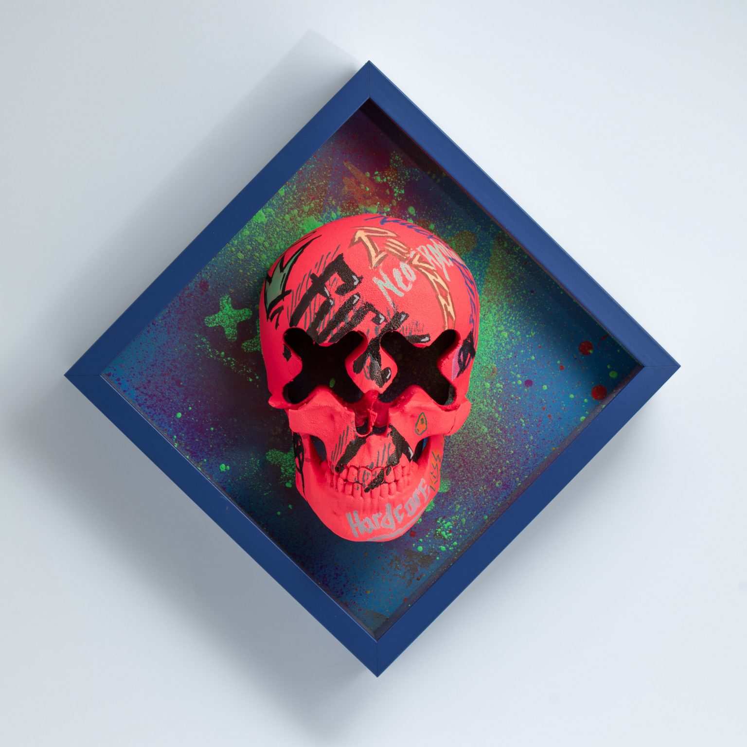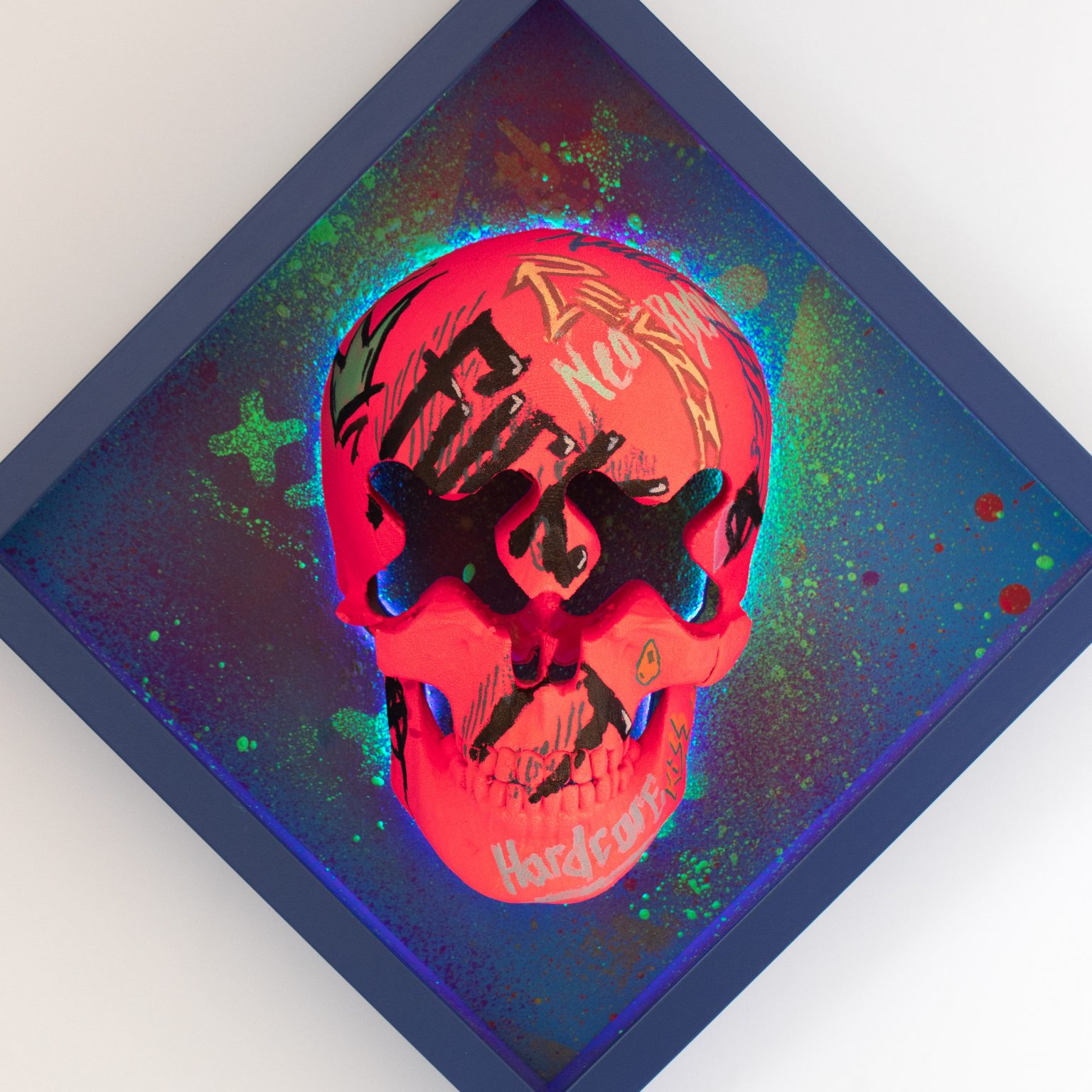 Pink Prophet – Death of Vandals series, 20253D print on wood, acrylic paint, LED neon light38 x 38 cm15″ × 15″