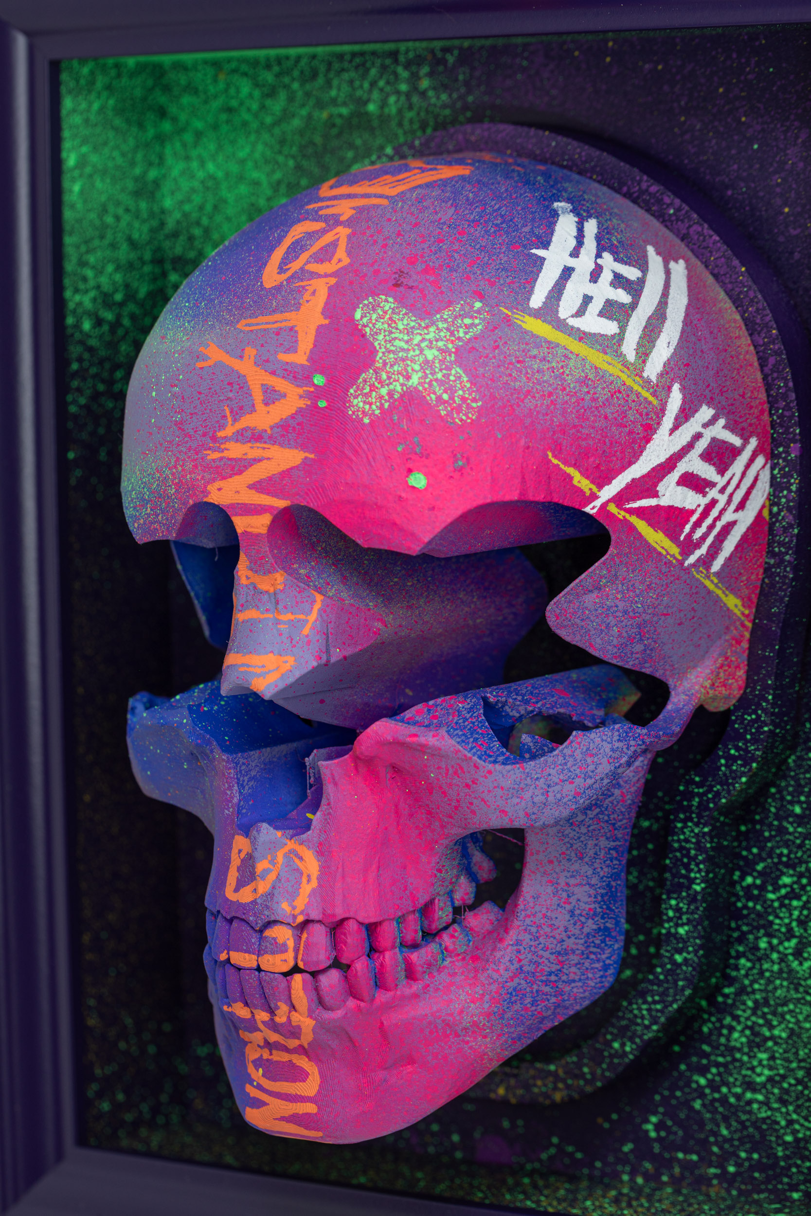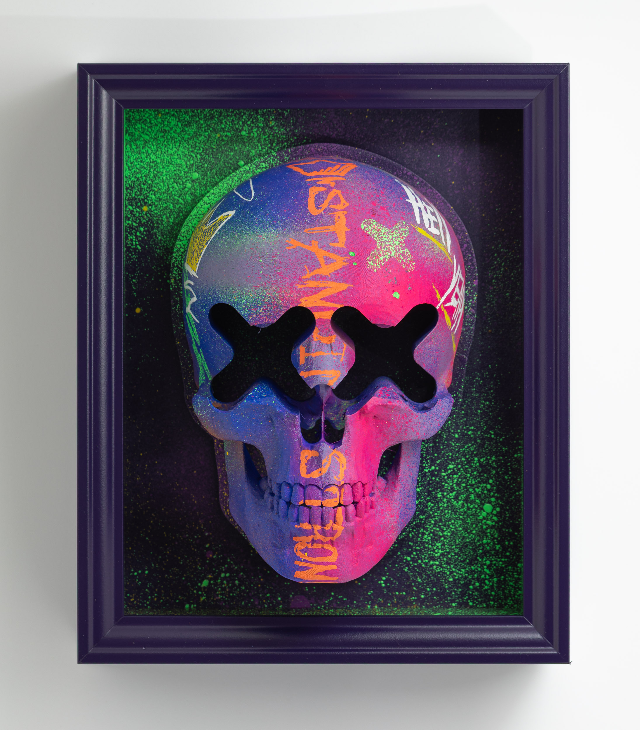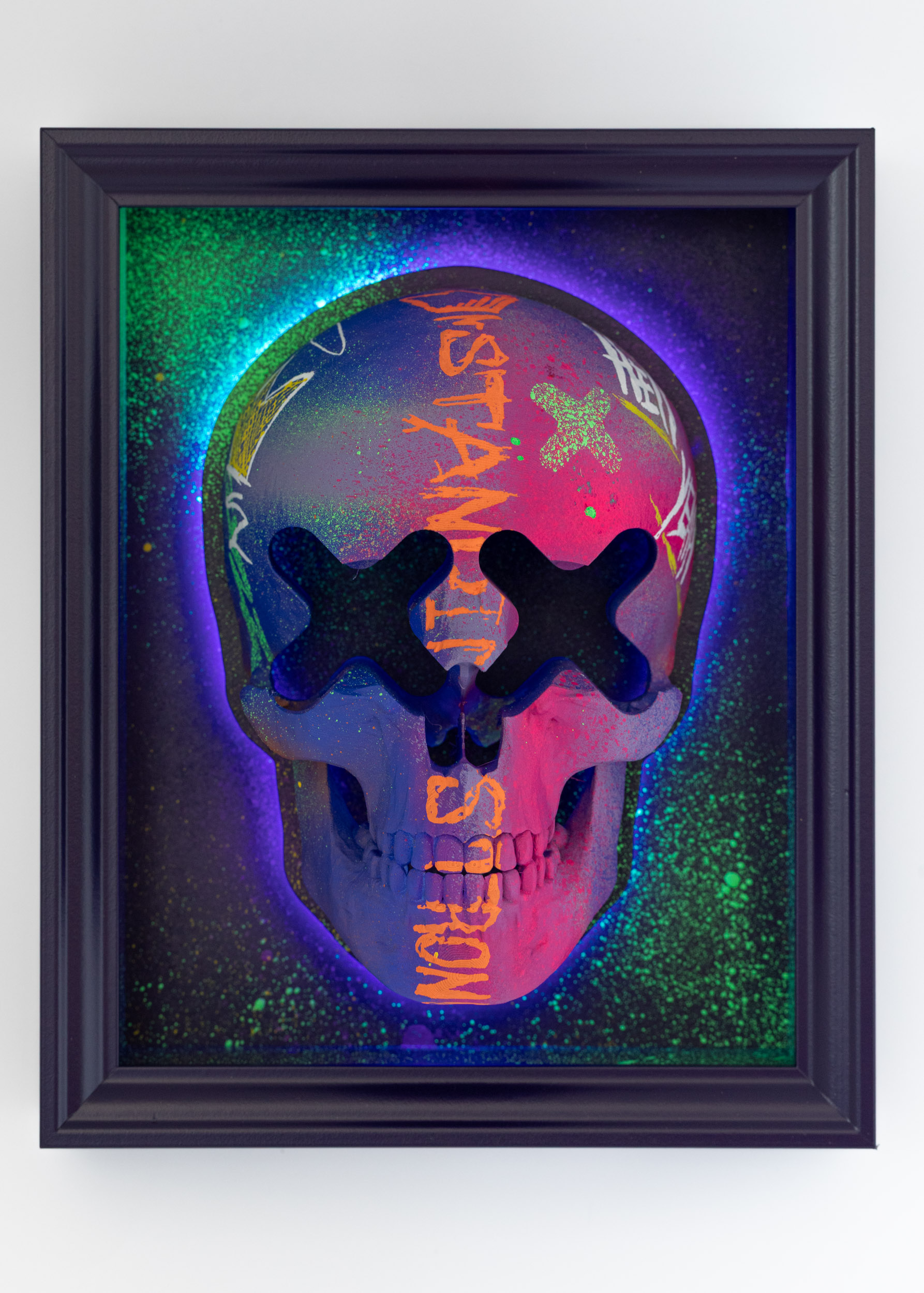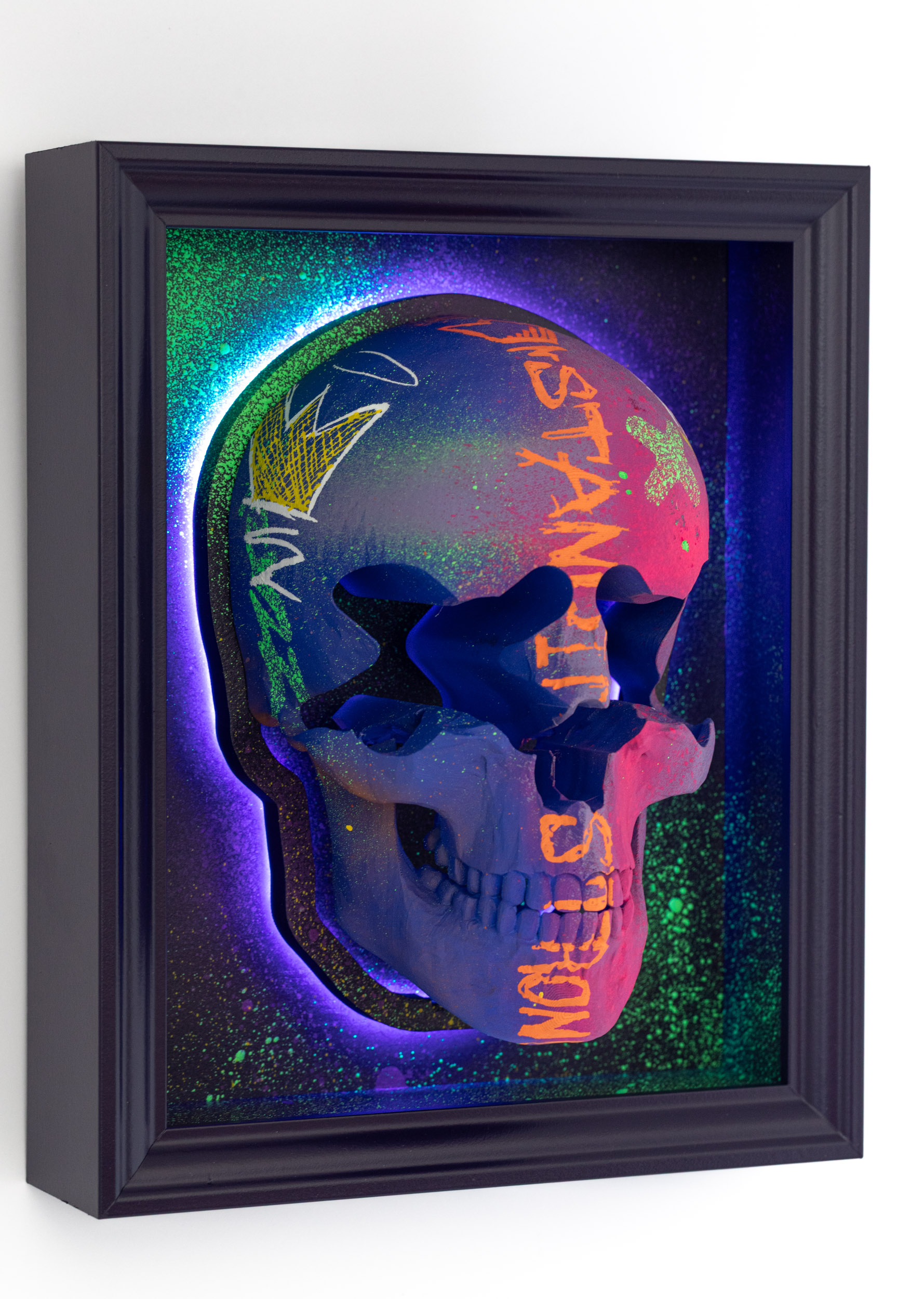 Standing Strong – Death of Vandals series, 20253D print on wood, acrylic paint, LED neon light23 x 28 cm9″ × 11″